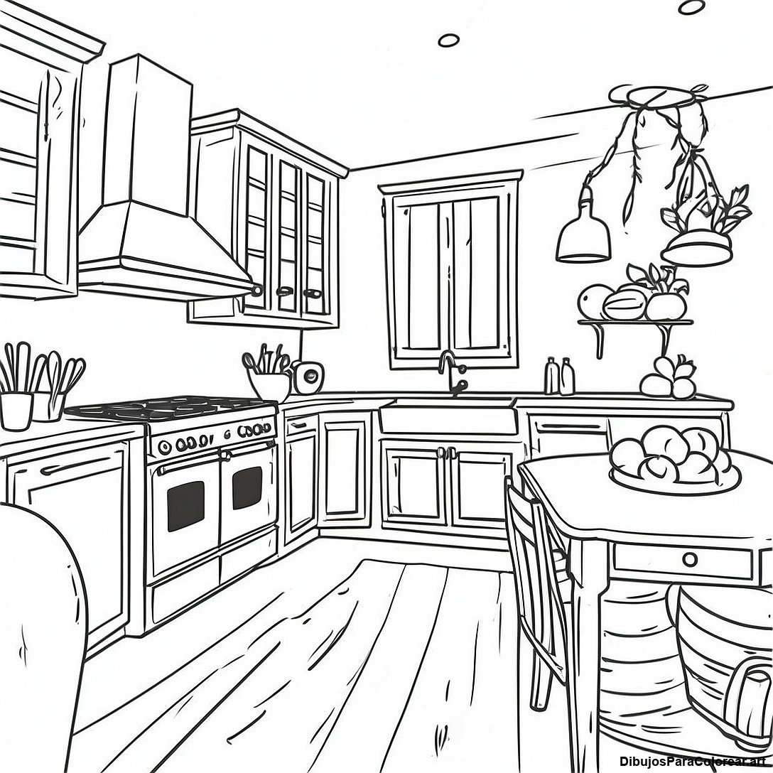Descargar PDF imprimible de Página Para Colorear De Una Cocina Acogedora De Casa De Campo