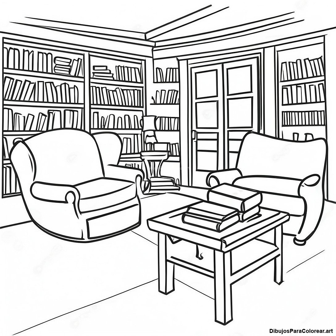 Pagina Para Colorear De Una Escena Acogedora En La Biblioteca 78480 20871