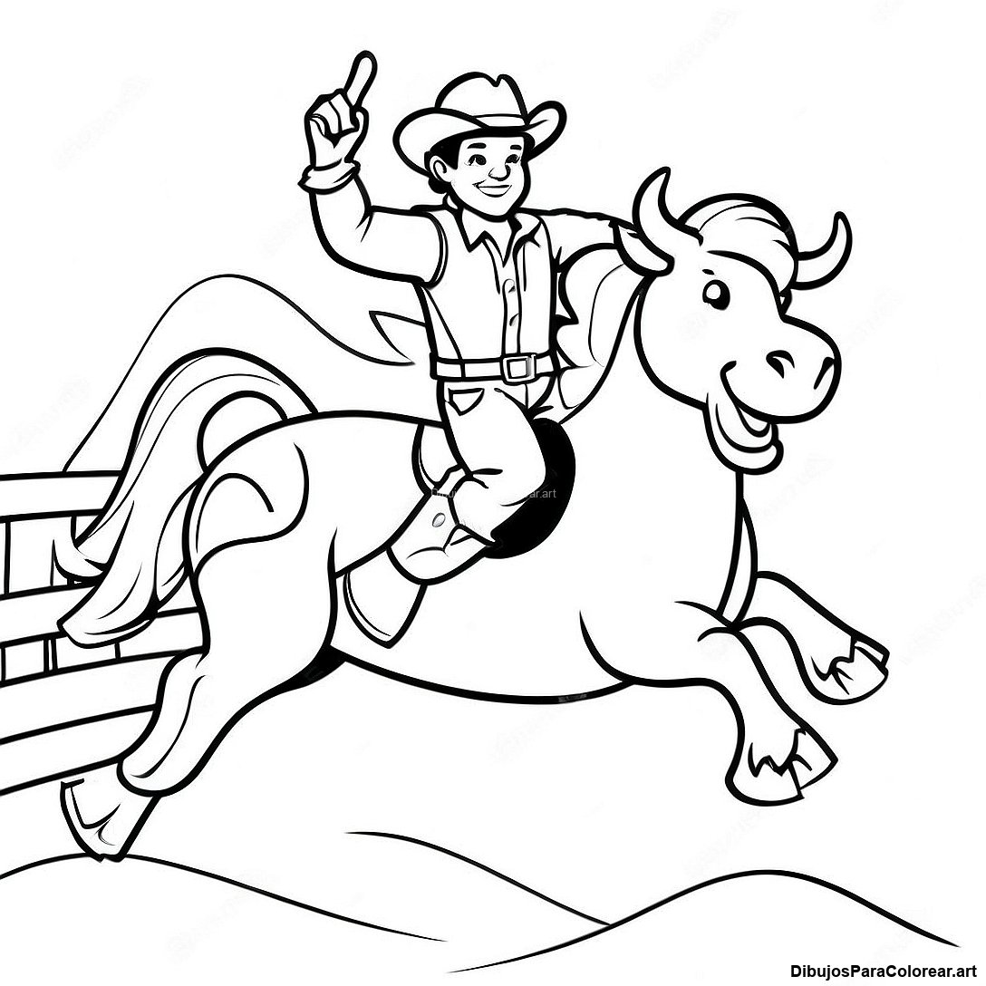 Descargar PDF imprimible de Página Para Colorear De Valiente Vaquero En Toro Salvaje