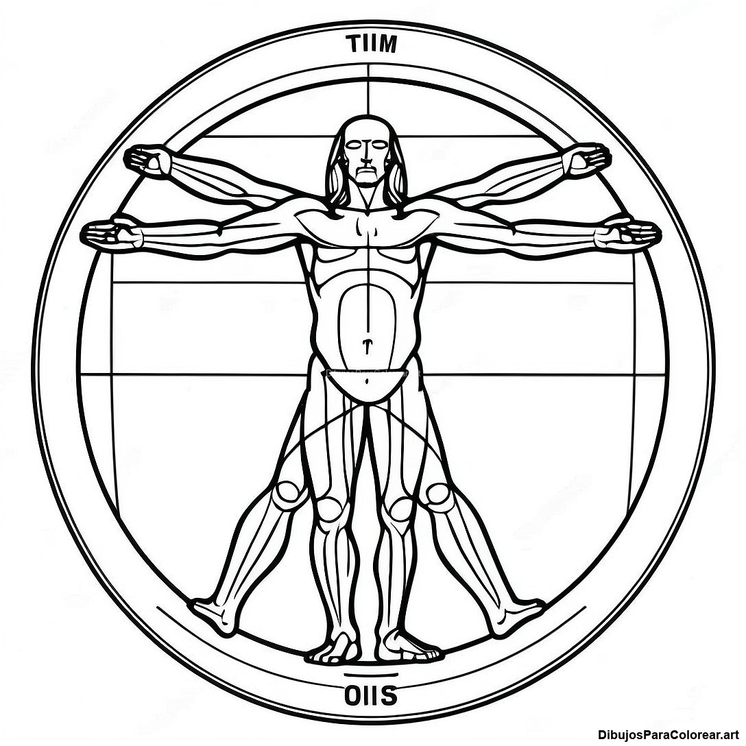 Página Para Colorear Del Hombre De Vitruvio Con Anatomía Detallada