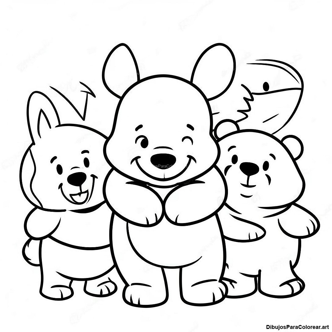 Descargar PDF imprimible de Página Para Colorear Del Lindo Bebé Winnie The Pooh Con Amigos