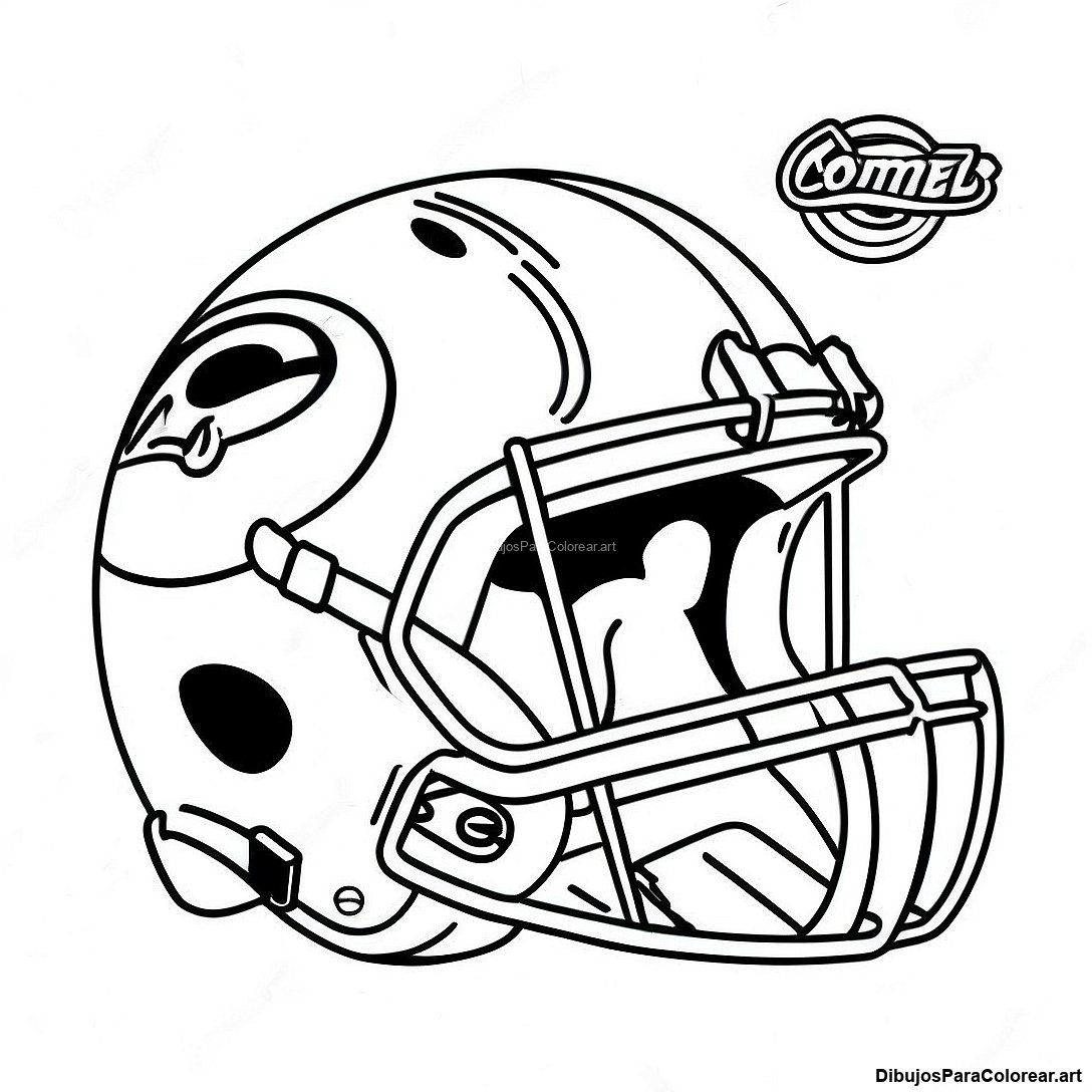 Página para colorear de casco y balón de fútbol