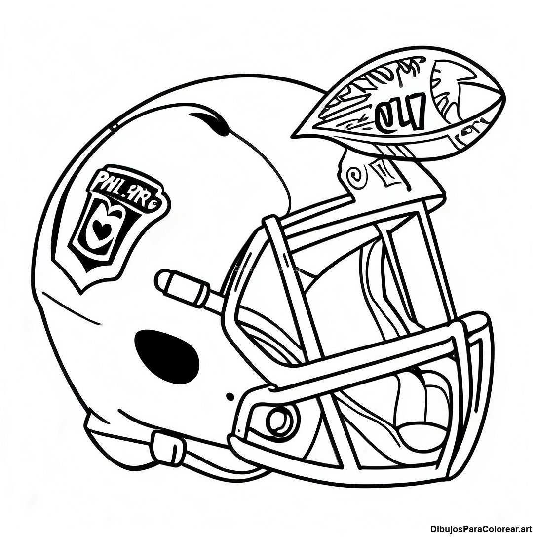 Página para colorear de casco y balón de fútbol