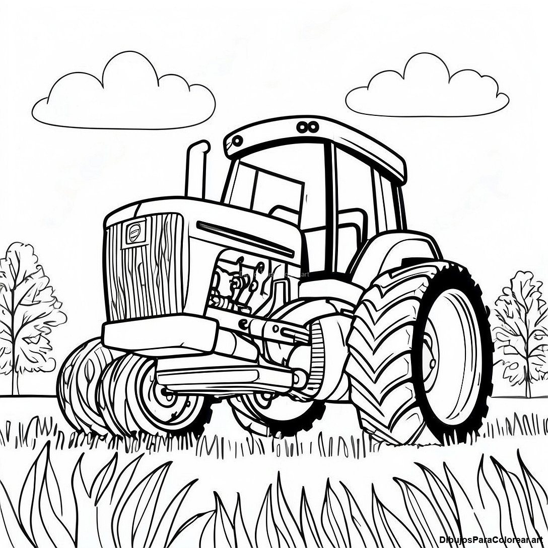 Descargar PDF imprimible de Página Para Colorear Del Tractor John Deere En Un Campo Soleado