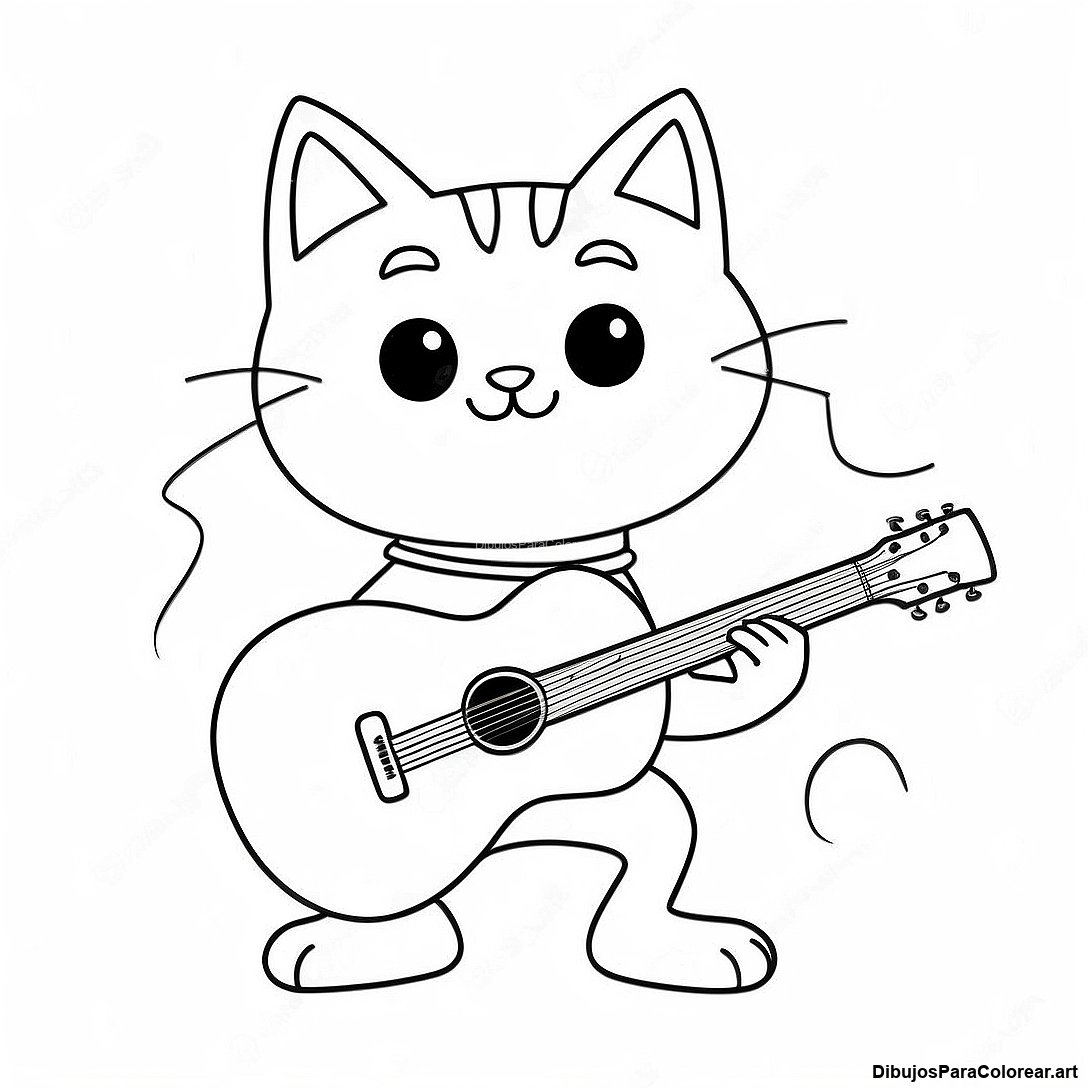 Descargar PDF imprimible de Pete El Gato Tocando La Guitarra Para Colorear