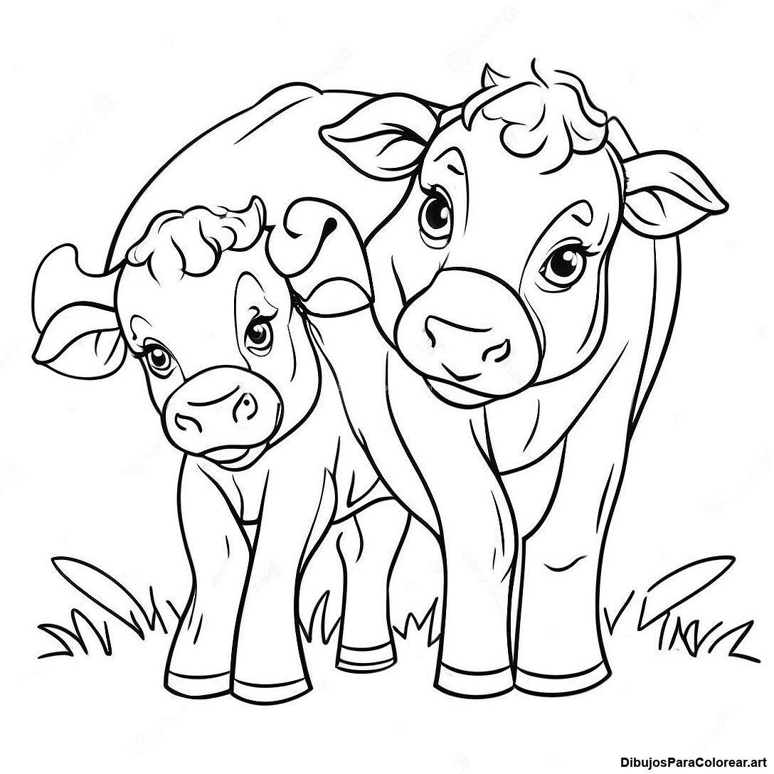 Ternerito Juguetón Con La Madre Toro Página Para Colorear