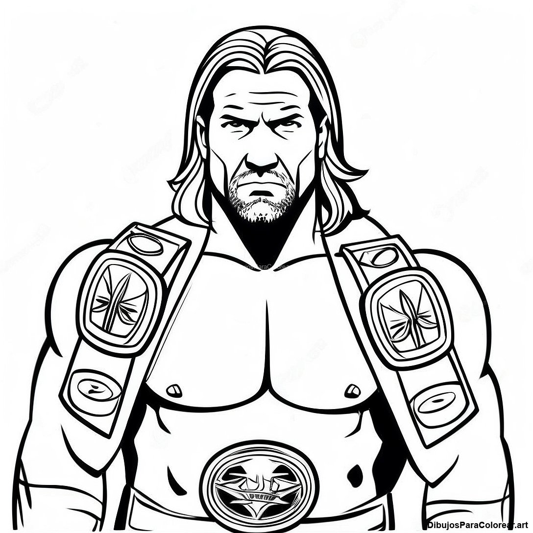 Descargar PDF imprimible de Triple H Sosteniendo Dos Cinturones Para Colorear