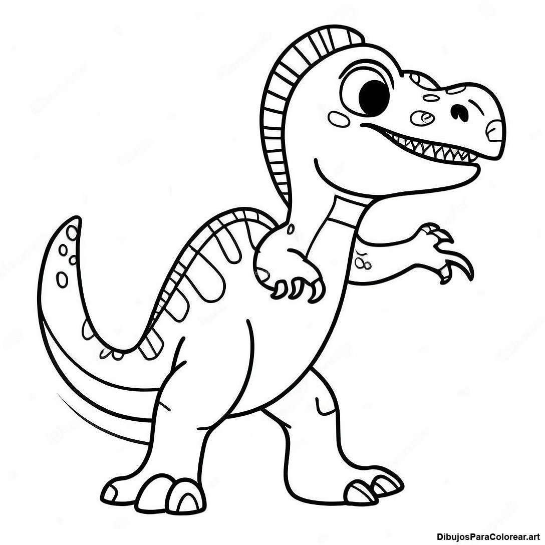 Descargar PDF imprimible de Velociraptor De Dibujos Animados Bailando Página Para Colorear