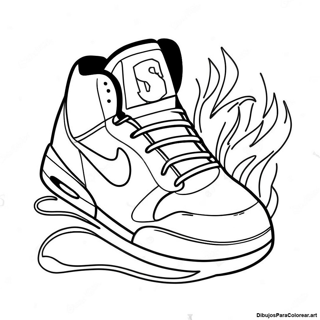 Zapatos De Baloncesto Con Llamas Para Colorear